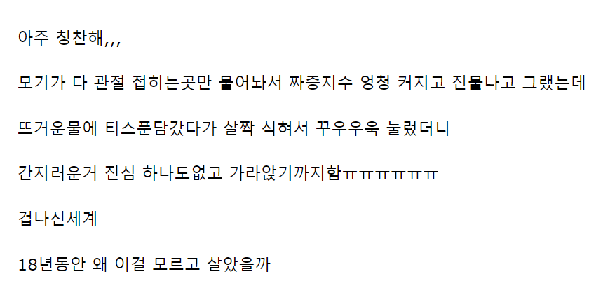 ¿©¸§Ã¶ ³Ê¹« Â¥Áõ ³ª´Â ¸ð±â! ¿À´Ãµµ ¸î ¹æÀ̳ª ¹°·È´Âµ¥¿ä. ¸ð±â¿¡ ¹°·Á ³Ê¹« °¡·Á¿ö Àáµµ ¸øÀÌ·ç°í ÀÖ½À´Ï´Ù ¤Ð.